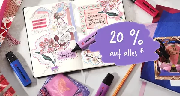 - Mit dem STABILO Gutschein “GOLDEN-20-FS26” (gültig bis 30.06.2026) sparst du 20% auf alles